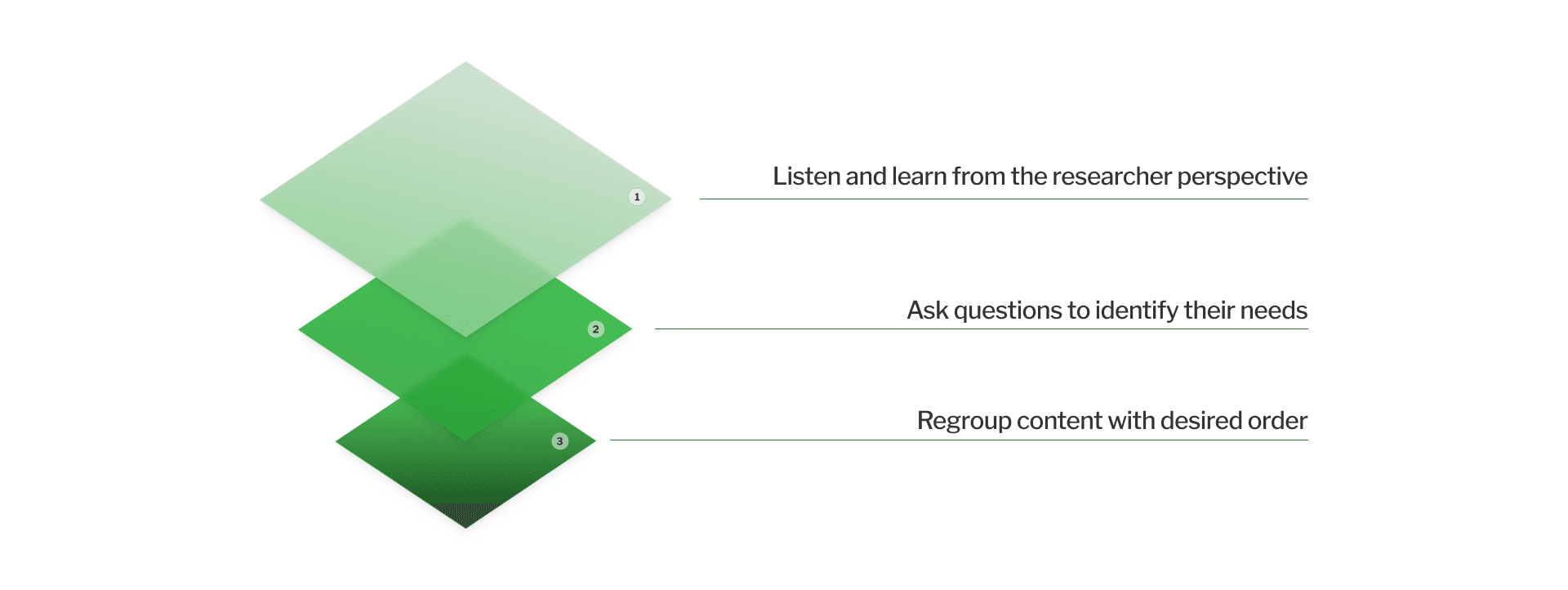 Researchers find challenge of visualizing and summarizing from a deck with content heavy to one-page infographic because they are looking for a guidance to convey the research better in visual.