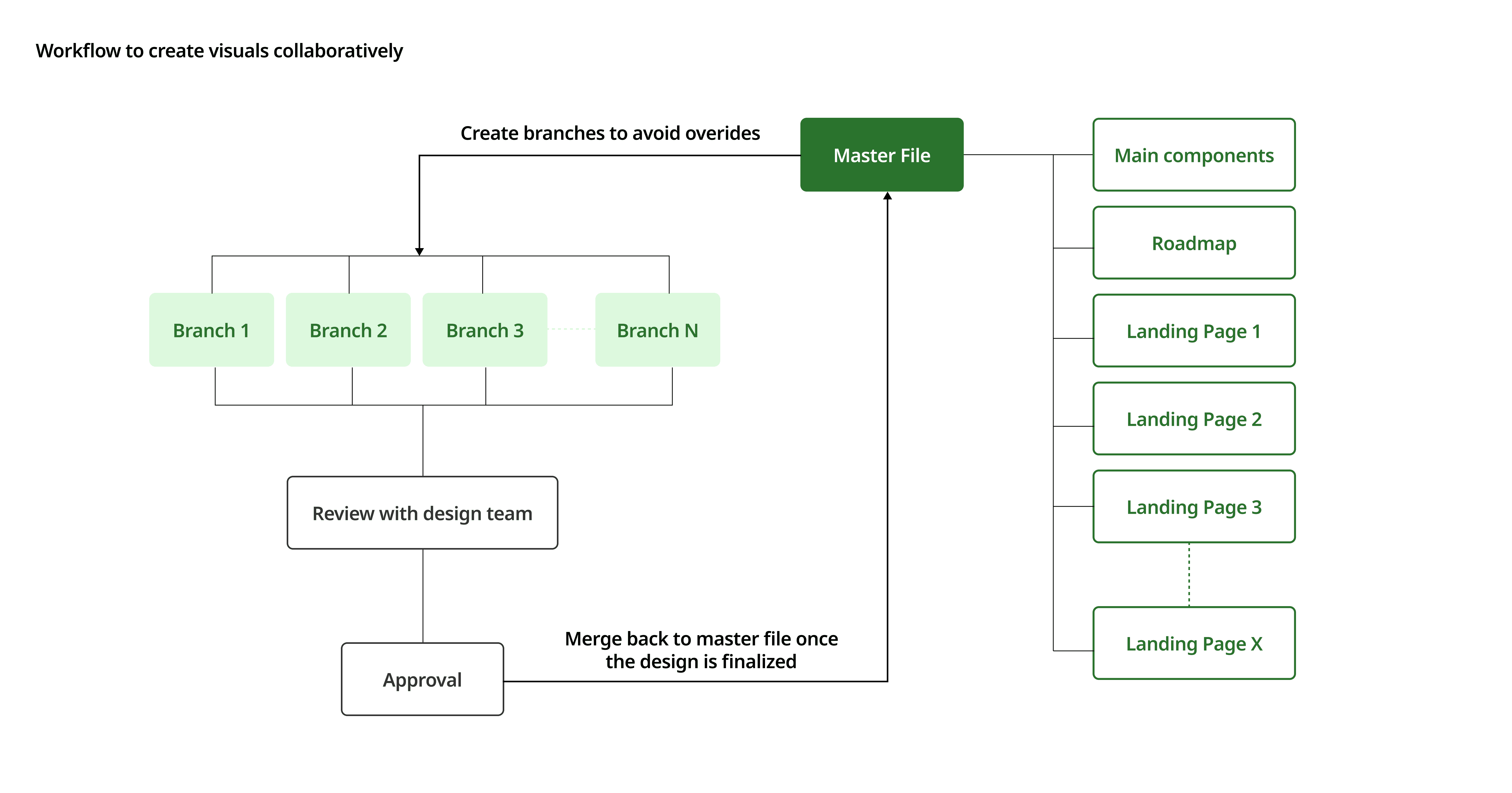In this phase, the design team built out the design system while moving from wireframes to high-fidelity pages. To keep reusable components and branding styles consistent across everyone’s work, we maintained a single source of truth in the master file—so designers could freely explore and iterate within their own branches.