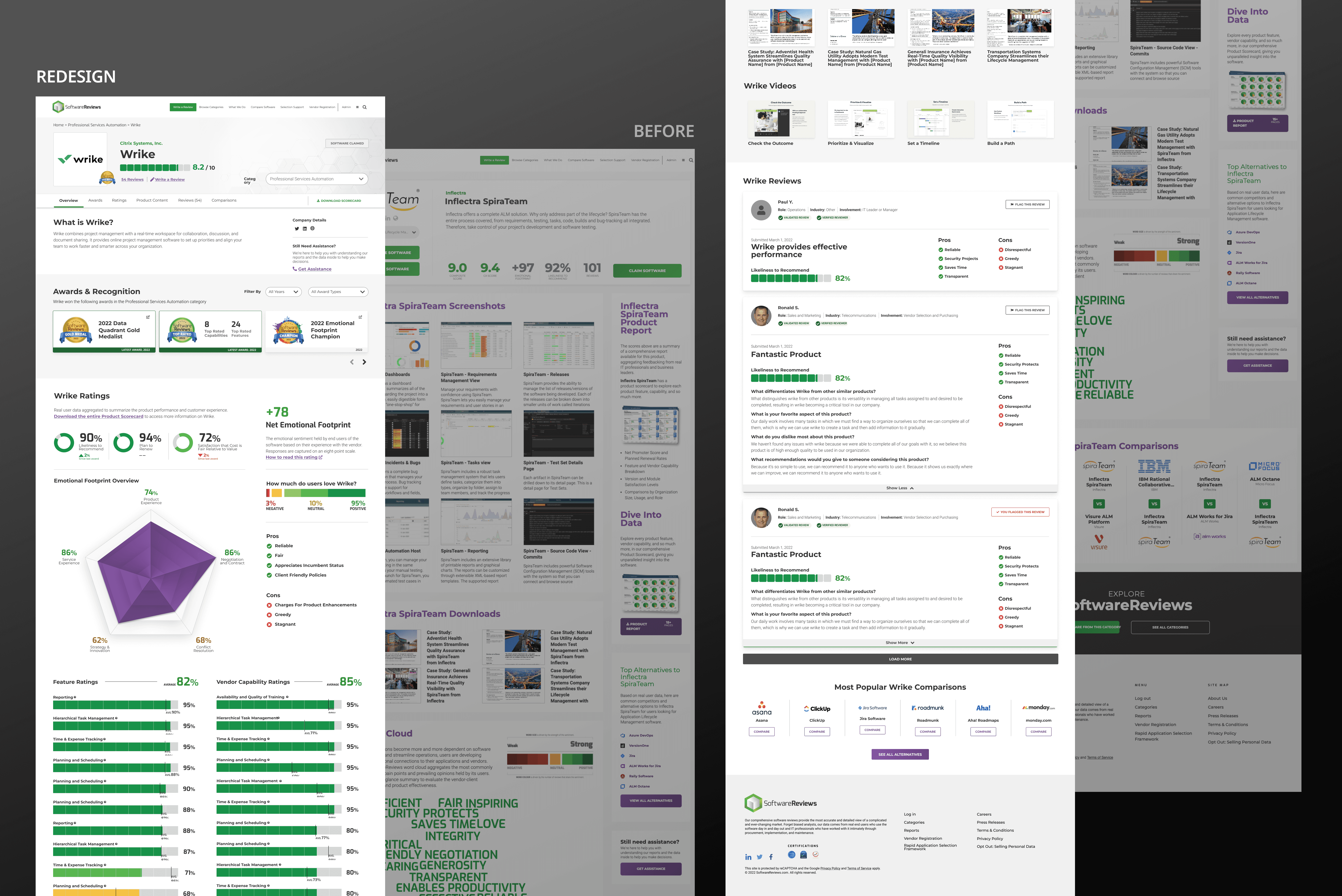 This redesign project enhanced the product pages by introducing more compelling, data-driven content. The solution was templated to accommodate all software offerings across the site.
