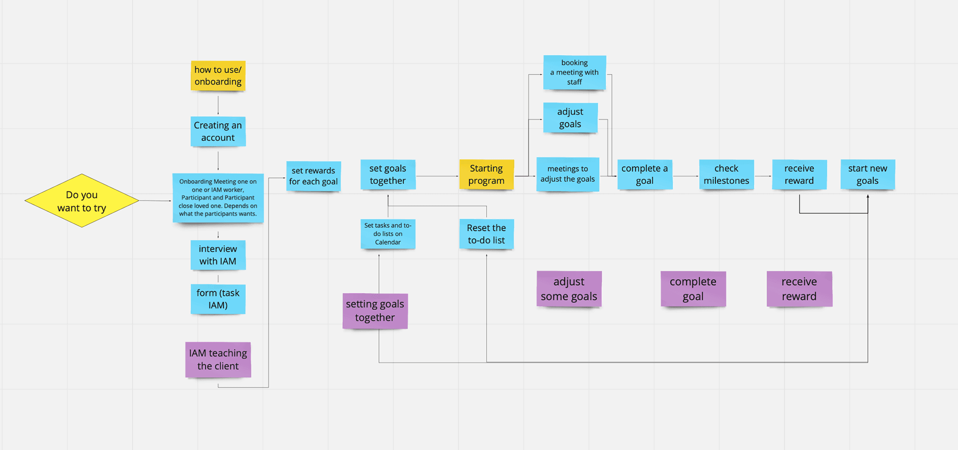 This would demonstrate the initial process that the IAM clients set up their goal and complete it according to our steps. Moreover, we used this flow for our concept testing with three participants.