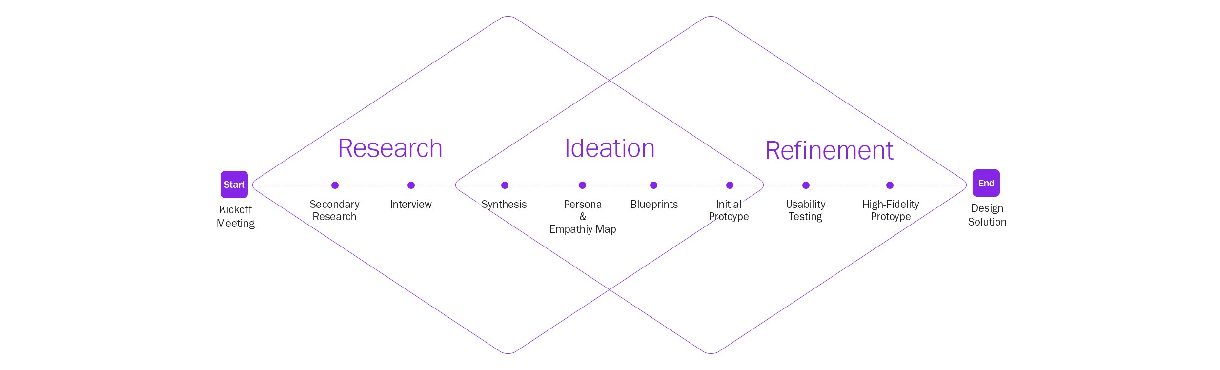 Secondary Research, Interview, Task/User Flow, Blueprints, Sketching, Prototype. Usability Testing